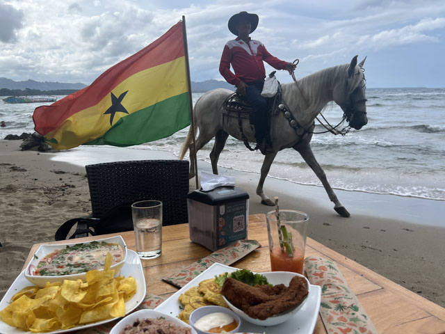 .. dort Empfang für die nächsten 10 Tage vom nicaraguanischen Driver Guide mit einem Toyota Fortuner SUV nach San Juan del Sur - Naturreservat La Flor - Beobachtung der jungen Meeresschildkröten - Weiter mit Fähre auf die Insel UNESCO Biosphärenreservat Ometepe - Naturerforschung per Kanu - zurück auf dem Festland nach Granada und Übernachten auf der kleinen Insel der Eco-Lodge Isletas El Espino auf dem Nicaraguasee. Nach dieser Nacht Rückkehr nach Granada für 1 Nacht mit Citytour und Kochkurs. Naturreservat Juan Venado an der Pazifikküste wird per Fischerboot und Guide erforschen wir den Mangrovenwald mit nachfolgender Übernachtung in Leon. Nach einer Citytour geht's zu den Kaffeeplantagen in Matagalpa auf 1300 Meter. Interessante naturkundliche Führung im Selva Negra. Managua ist der nächste Stop und anschliessend 2 Tage am Pazifik in der Morgan's Rock Hacienda & Eco-Lodge. Auf der Farm mussten wir Kuhmelken, Eier sammeln fürs Frühstück, alles zubereiten auf dem Holzfeuer. Dann Rückfahrt zur Grenze und zu Fuss zum Costa-ricanischen Zoll. Eine DriverGuideDame fährt uns nach der Zollkontrolle dann nach Tamarindo, wo wir in der Capitan Suizo Lodge noch 2 herrliche Tage am wunderschönen Strand verbrachten.
